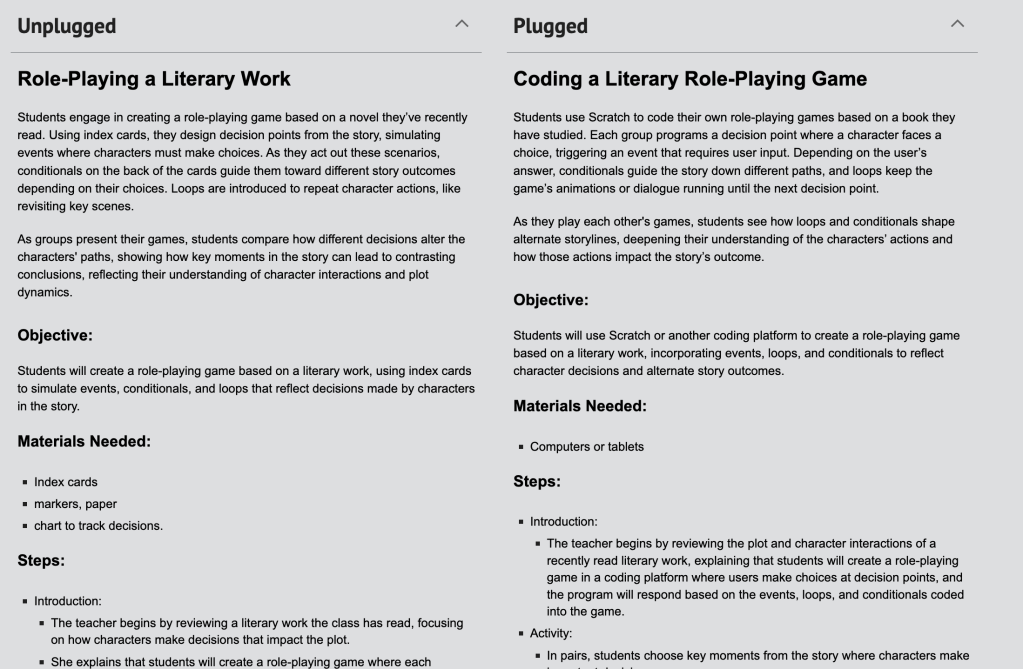 This lesson is an example of how computer science isn’t just about writing code or using devices. It’s about thinking logically, structuring ideas, and solving problems, skills that students can build with a stack of index cards. Through storytelling, they learn to recognize patterns, break down complex decisions, and model consequences, all fundamental elements of computational thinking.