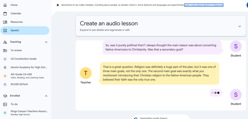 This blog post was drafted with the help of Google Gemini to help organize and flesh out my thoughts and ideas regarding how to use the new Gemini feature in Google Classroom for creating audio lessons. I also used NotebookLM to generate a brief audio overview, perfect for those who want to listen and learn on the go.
