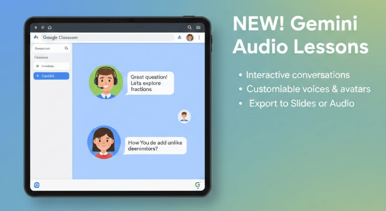 - Gemini in Google Classroom now transforms text into interactive, conversational audio lessons featuring customizable avatars and voices.