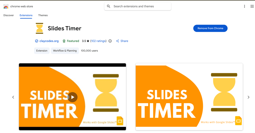 The Slides Timer Chrome extension offers a practical and free solution (there is also a paid version) to help you maintain your cadence. This tool allows you to embed functional timers directly into your Google Slides presentations, ensuring that your pacing remains visible to both you and your audience without the need to toggle between different browser tabs or physical stopwatches.